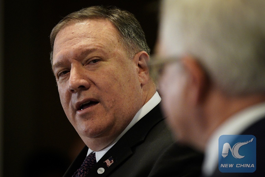 U.S. Secretary of State Mike Pompeo attends a joint press conference in Warsaw, Poland, Feb. 14, 2019. The European nations showed little interest in the Middle East peace and security plans that the United States has touted at the international conference which ended on Thursday. (Xinhua/Jaap Arriens)