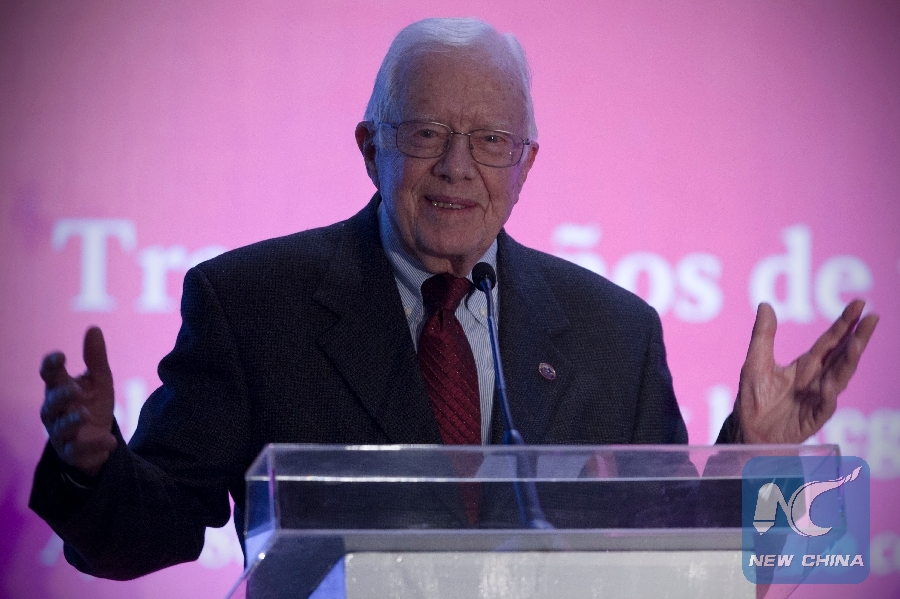 File Photo: Former U.S. President Jimmy Carter delivers a speech during the opening ceremony of the Inter American Conference on Onchocerciasis in Mexico City, capital of Mexico, on Nov. 14, 2014. (Xinhua/Alejandro Ayala)