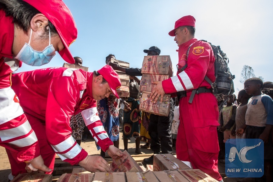 Chinese rescuers donate supplies to cyclone victims in central Mozambique