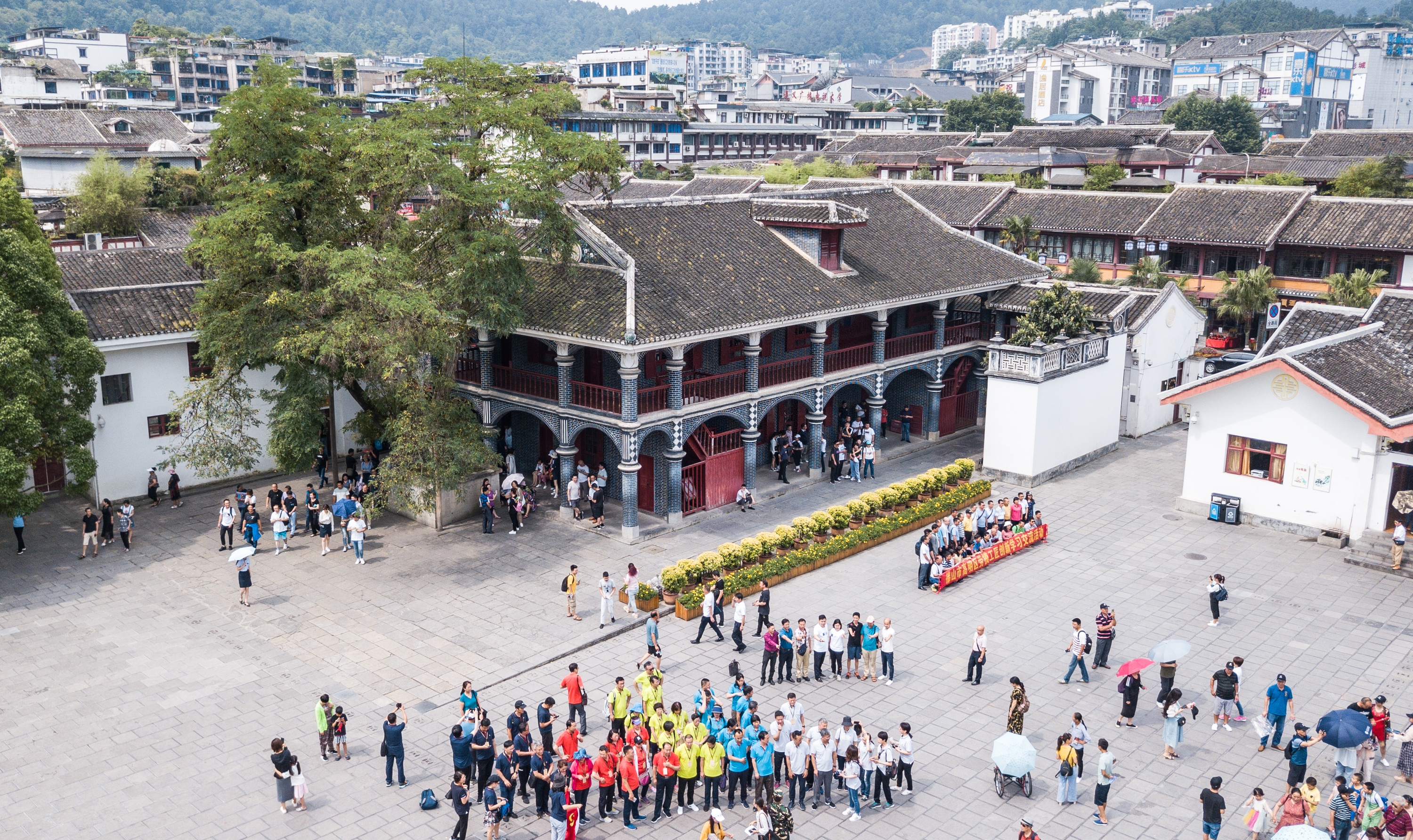 Aerial photo taken on July 4, 2019 shows people visiting the site of the Zunyi Conference in Zunyi City, southwest China's Guizhou Province. (Xinhua/Tao Liang)