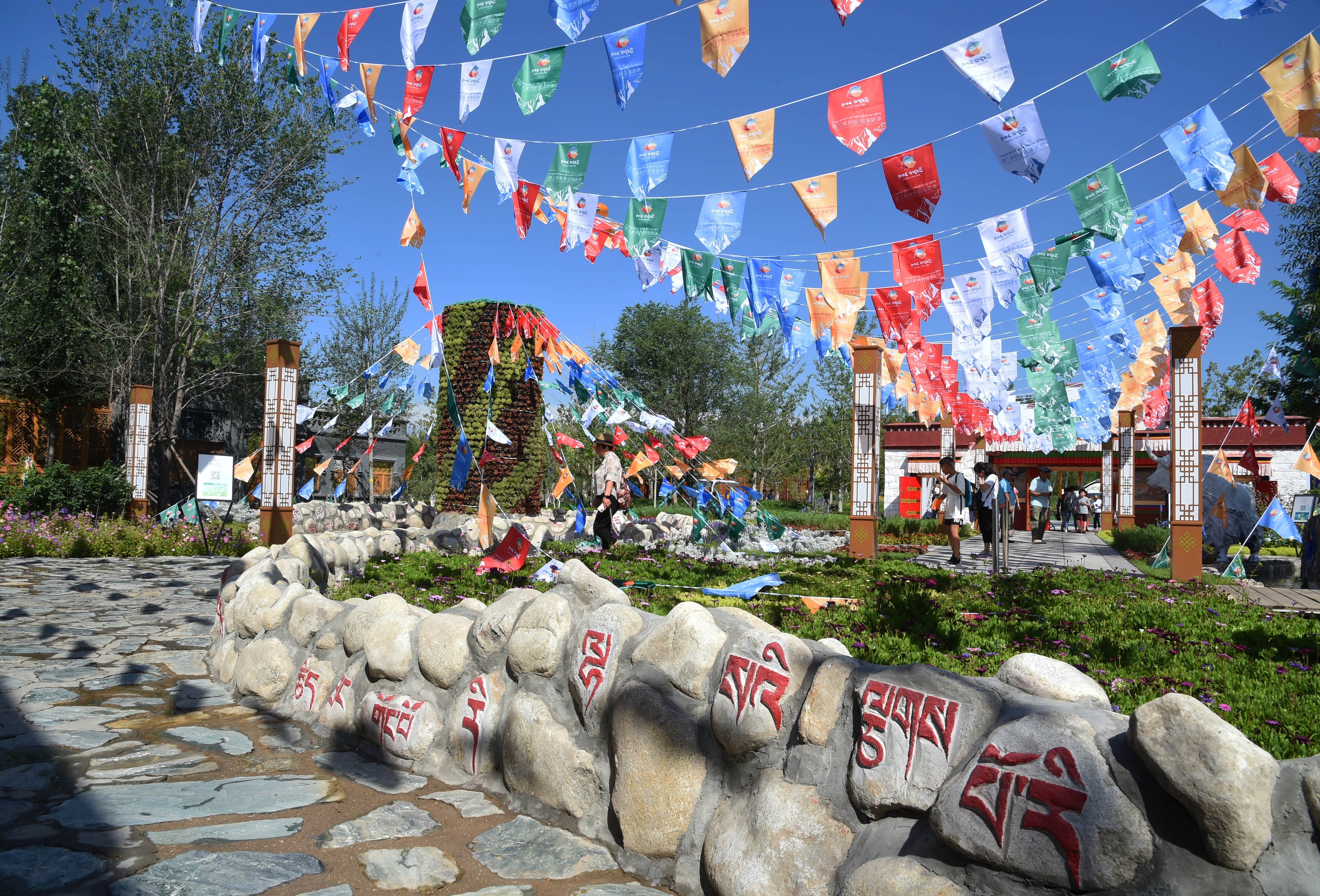 Tourists visit the Tibet Garden at the Beijing International Horticultural Exhibition in Beijing, capital of China. (Xinhua/Ren Chao)
