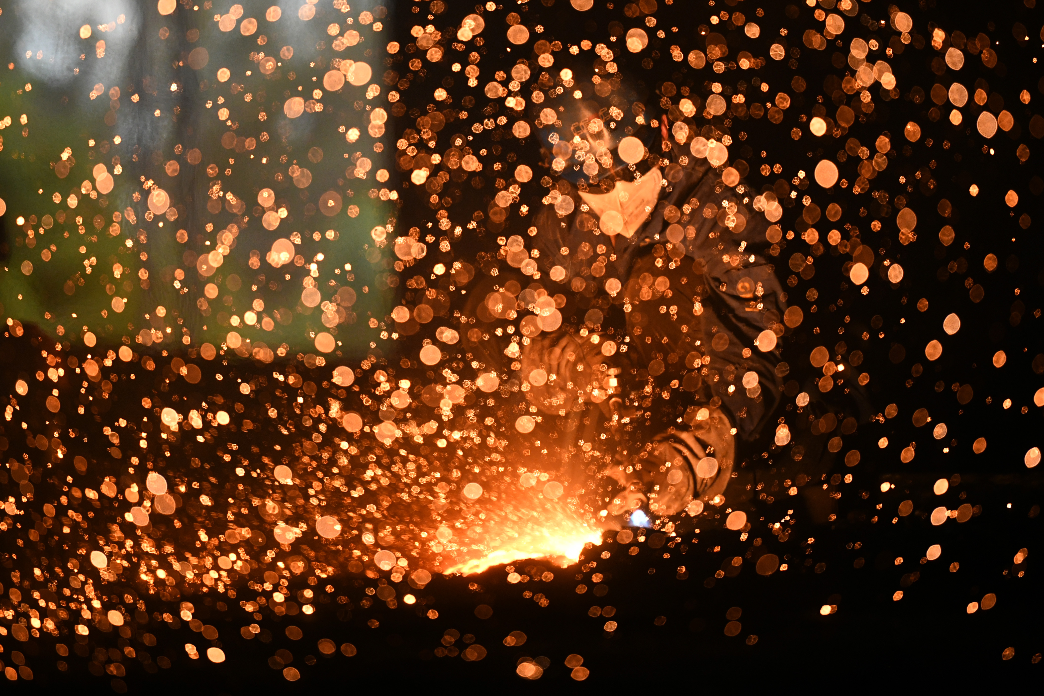 A worker welds components at a factory of Harbin Electric Machinery Company Limited in Harbin, Sept. 2, 2019. (Xinhua/Wang Jianwei)