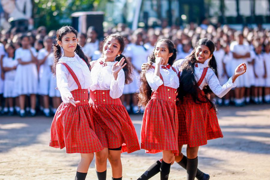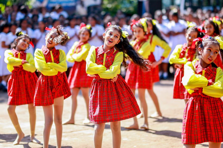 Students perform to celebrate Children's Day at Gothami Balika Vidyalaya in Colombo, Sri Lanka, on October 1, 2019. (Photo by Gayan Sameera/Xinhua)