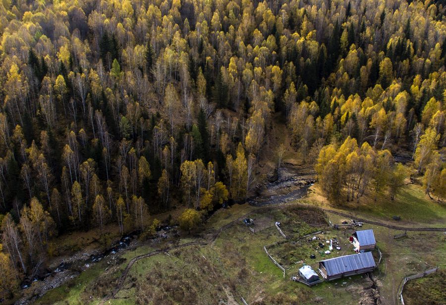 Aerial photo taken on Sept. 26, 2019 shows the scenery of Kanas scenic spot in northwest China's Xinjiang Uygur Autonomous Region. (Xinhua/Ma Kai)