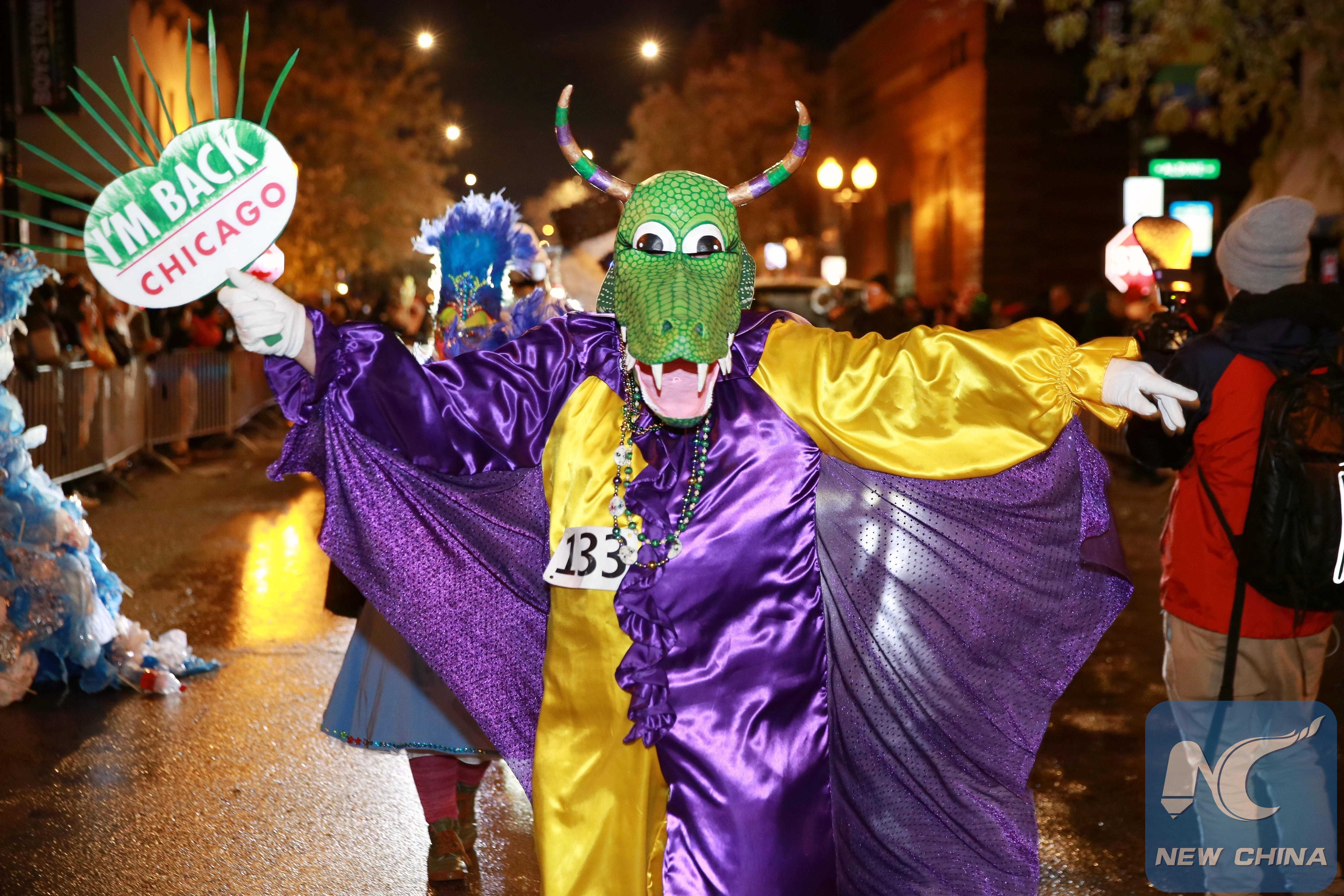 People dressed in Halloween costumes attend the annual Halloween Parade in Chicago, the United States, on Oct. 31, 2019. (Xinhua/Wang Ping)