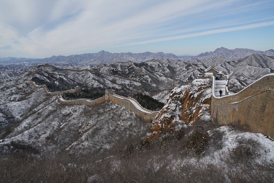 Photo taken on Dec. 17, 2019, shows Jinshanling Great Wall in Luanping County, Hebei Province, north China, covered in a crisp white blanket after heavy snow. (Photo provided to Xinhua)