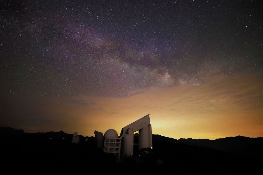 File photo shows the Large Sky Area Multi-Object Fiber Spectroscopic Telescope (LAMOST) under starry sky in Xinglong, in north China's Hebei Province. (Provided to Xinhua)