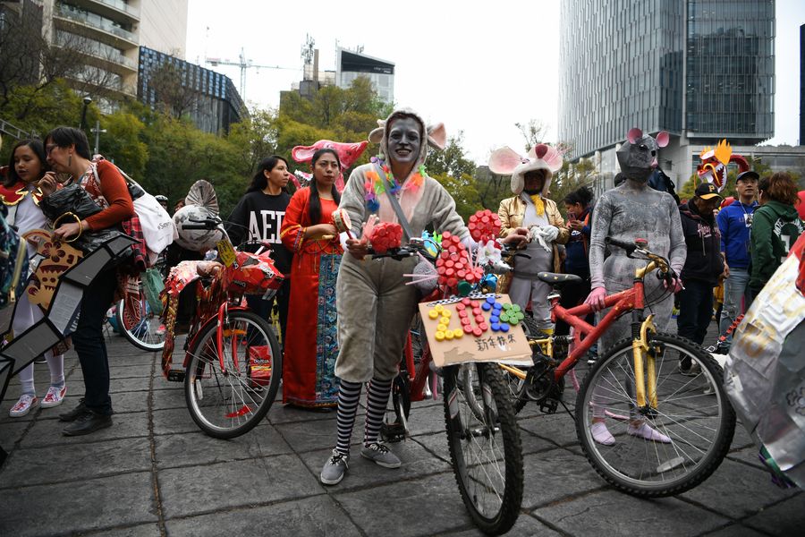 People participate in a bicycle zodiac decoration competition in Mexico City, Mexico, Jan. 19, 2020. (Photo provided by China Cultural Center in Mexico)■