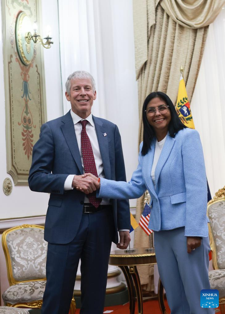CARACAS, Feb. 11 (Xinhua) -- Venezuela's acting president Delcy Rodriguez met with U.S. Energy Secretary Chris Wright at the Miraflores Palace on Wednesday to review the bilateral energy agenda.