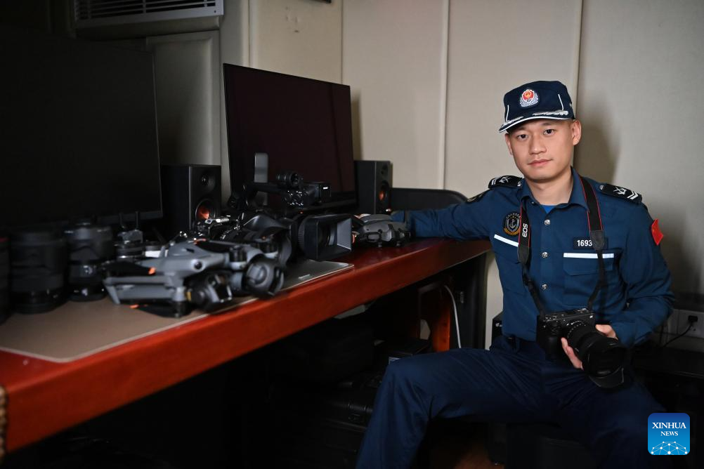 Law enforcer Qiu Canhui conducts evidence collection training aboard the China Coast Guard (CCG) vessel Wanshan in the territorial waters of China's Huangyan Dao, Feb. 11, 2026. Right ahead of the Chinese New Year, a traditional occasion for family reunion in China, a group of young law enforcers remain loyally stationed and highly alert around the clock, hundreds of miles away from their loved ones. (Photo by Zhai Yifan/Xinhua)