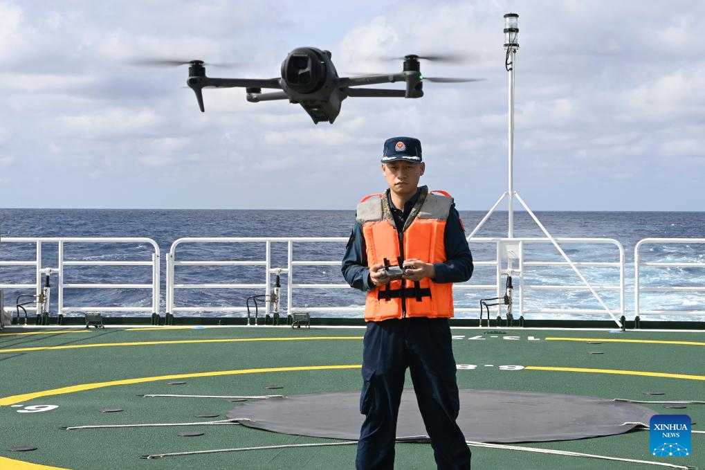 Law enforcer Qiu Canhui operates a drone aboard the China Coast Guard (CCG) vessel Wanshan in the territorial waters of China's Huangyan Dao, Feb. 11, 2026. Right ahead of the Chinese New Year, a traditional occasion for family reunion in China, a group of young law enforcers remain loyally stationed and highly alert around the clock, hundreds of miles away from their loved ones. (Photo by Zhai Yifan/Xinhua)