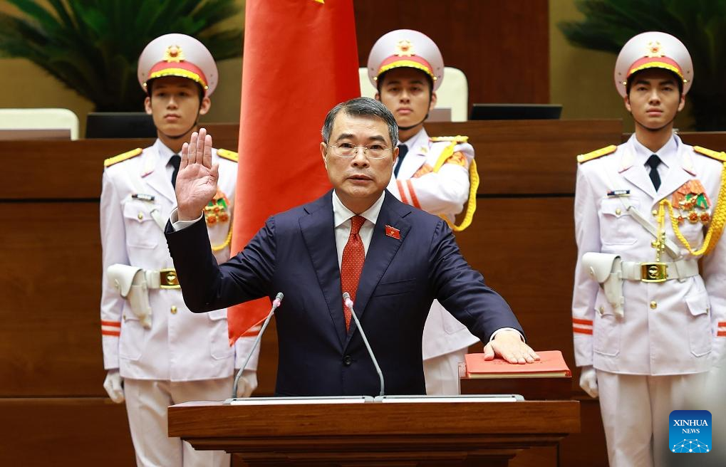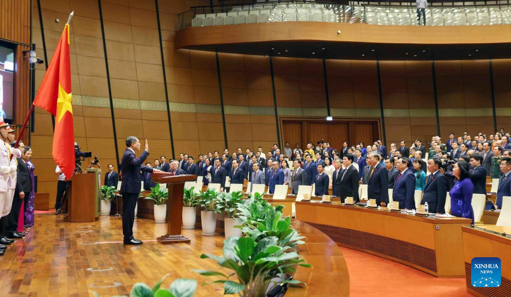 Le Minh Hung attends a swearing-in ceremony in Hanoi, Vietnam, April 7, 2026. The 16th National Assembly of Vietnam on Tuesday afternoon elected Le Minh Hung as the country's new prime minister. (VNA via Xinhua)