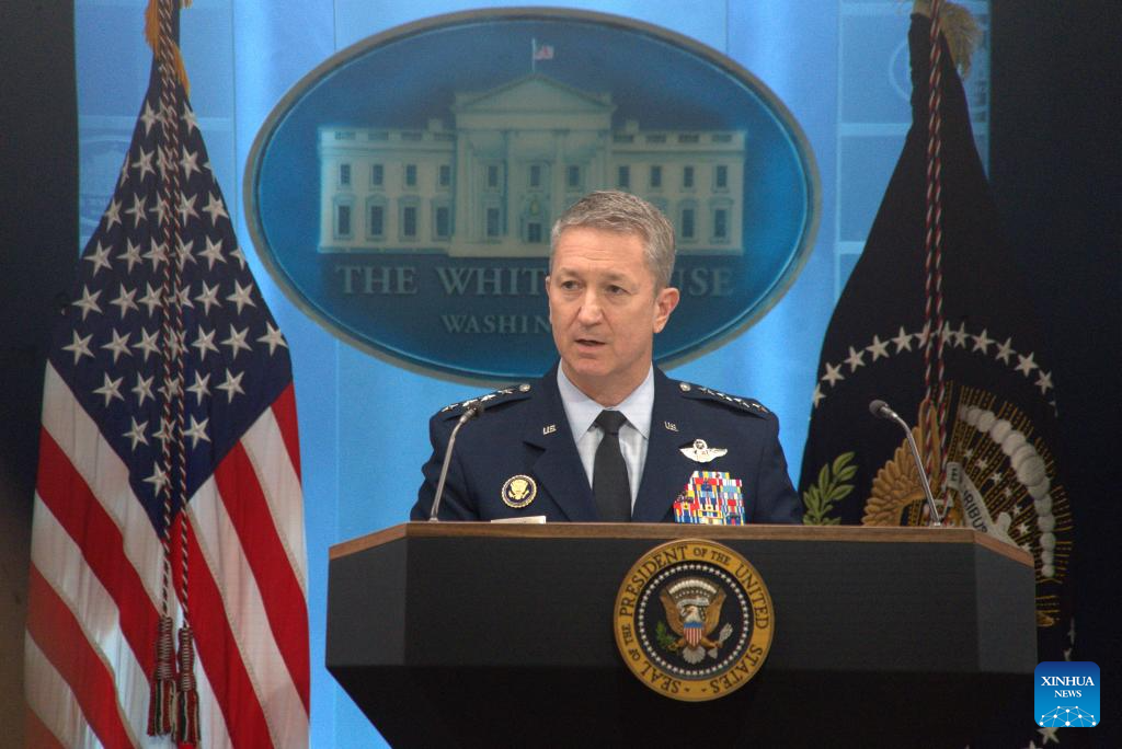 U.S. Chairman of the Joint Chiefs of Staff Dan Caine speaks during a press conference at the White House in Washington, D.C., the United States, April 6, 2026. Caine told reporters that the U.S. A-10 Warthog downed on Friday was conducting a "sandy" mission -- positioning itself between the rescue force and enemy fire. (Photo by Li Yuanqing/Xinhua)