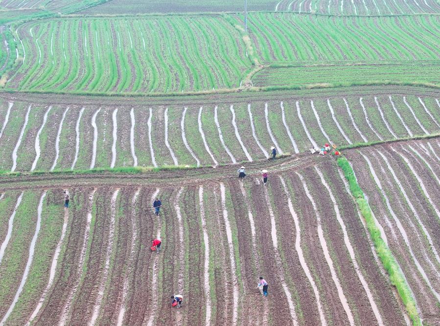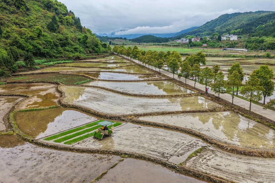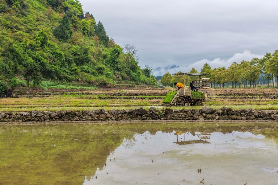 Farmers cover sweet potato seedlings with mulch film in Gulou District of Kaifeng City, central China's Henan Province, April 7, 2026. (Photo by Li Junsheng/Xinhua)A staff member tends rice seedlings at an intelligent seedling factory in Guangshan County of Xinyang City, central China's Henan Province, April 6, 2026. (Photo by Xie Wanbo/Xinhua)A farmer ventilates greenhouses at a watermelon planting base in Zhongcao Village of Mengzhou, central China's Henan Province, April 5, 2026. (Photo by Bai Shuiping/Xinhua)An aerial drone photo taken on April 7, 2026 shows villagers working in the fields in Shitan Township of Hengdong County in Hengyang, central China's Hunan Province. (Photo by Cao Zhengping/Xinhua)A drone photo taken on April 7, 2026 shows farmers planting seedlings of early-season rice in a field in Lefutang Town of Daoxian County, central China's Hunan Province. (Photo by Jiang Keqing/Xinhua)A drone photo taken on April 7, 2026 shows farmers operating an agricultural machine to plant early-season rice in a field in Lefutang Town of Daoxian County, central China's Hunan Province. (Photo by Jiang Keqing/Xinhua)■