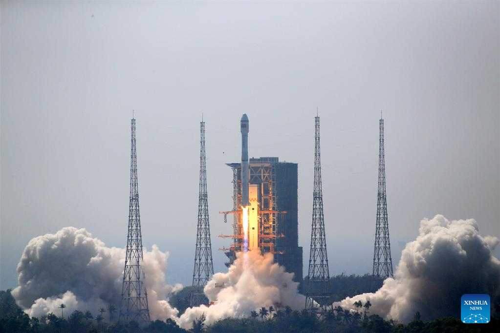 The rocket blasted off at 11:06 a.m. (Beijing Time) at the Wenchang Spacecraft Launch Site in the southern Hainan Province before sending the satellites into preset orbits.