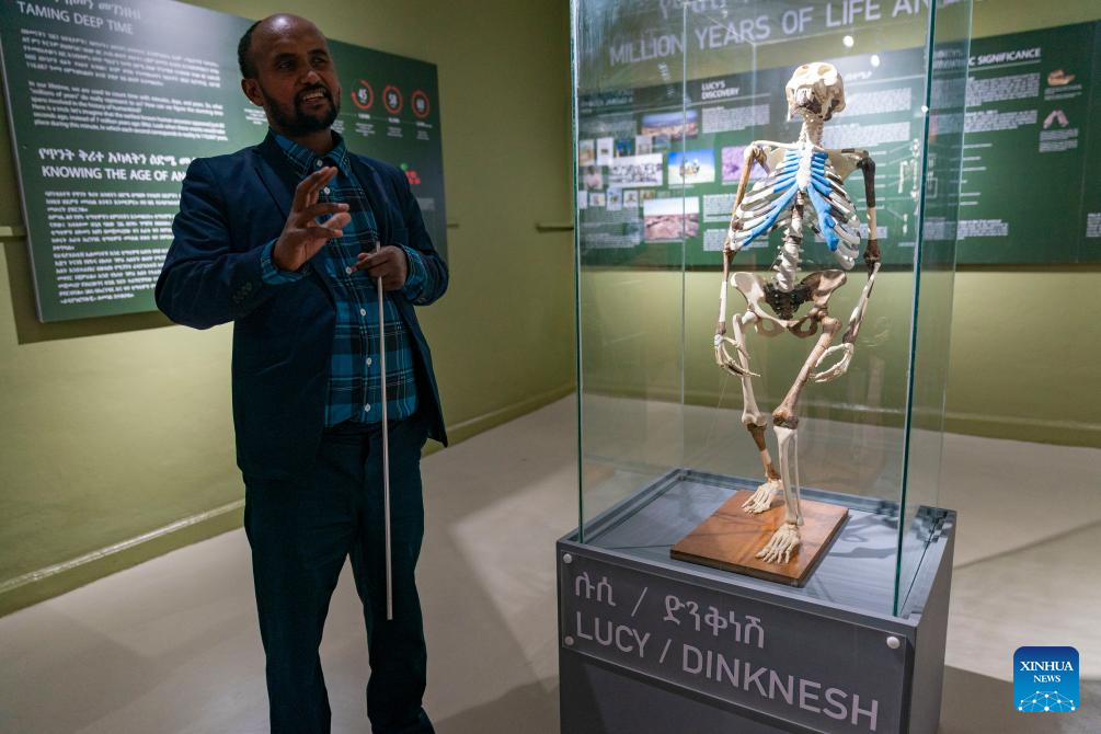 The museum houses collections of precious heritages, including fossilized bones of a female of the hominin species Australopithecus afarensis, named "Lucy", which is believed to live about 3.2 million years ago. (Xinhua/Xie Jianfei)