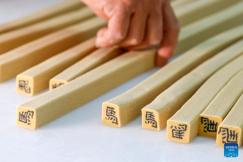 Character-inlaid candy cubes are pictured in Qimen County of Huangshan City, east China's Anhui Province, Jan. 13, 2026.