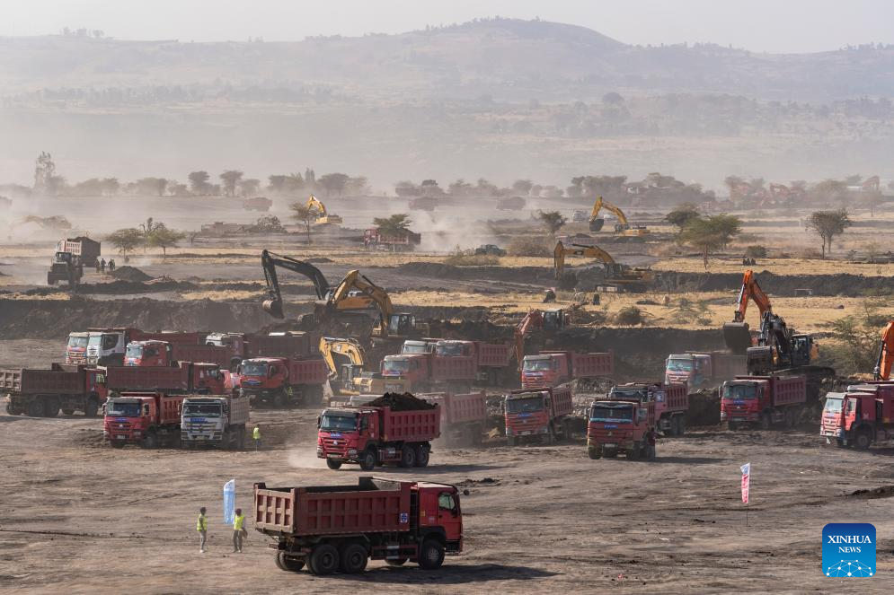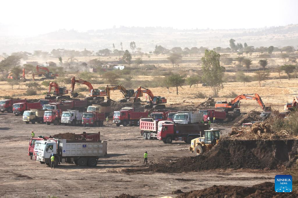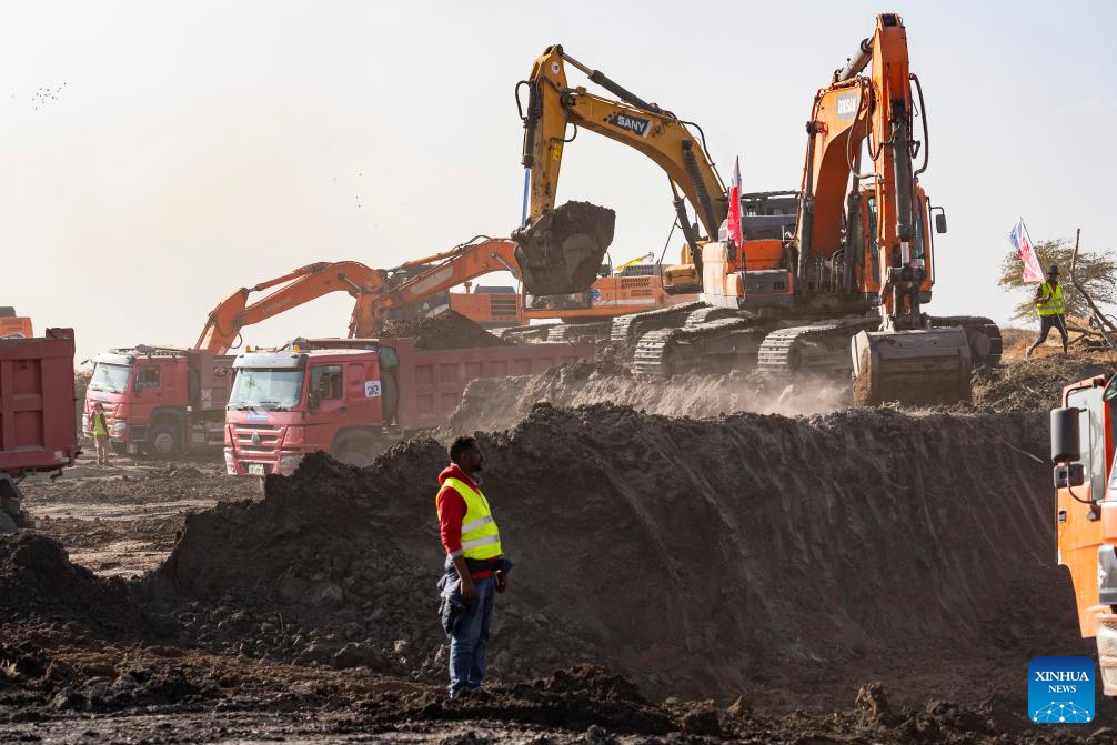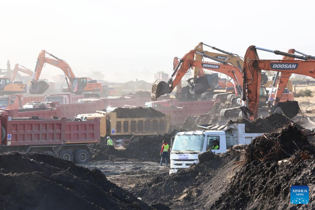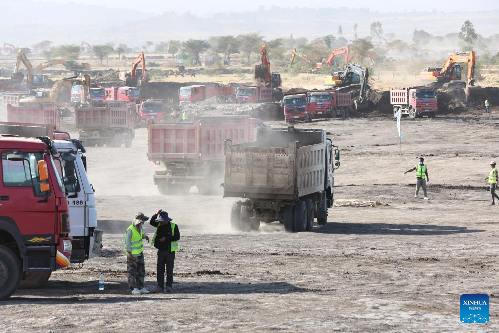 This photo taken on Feb. 13, 2026 shows the construction site of the Bishoftu International Airport, near Bishoftu town in the Oromia regional state of Ethiopia. The Bishoftu International Airport is expected to become Africa's largest aviation hub upon completion. (Xinhua/Geng Xinning)