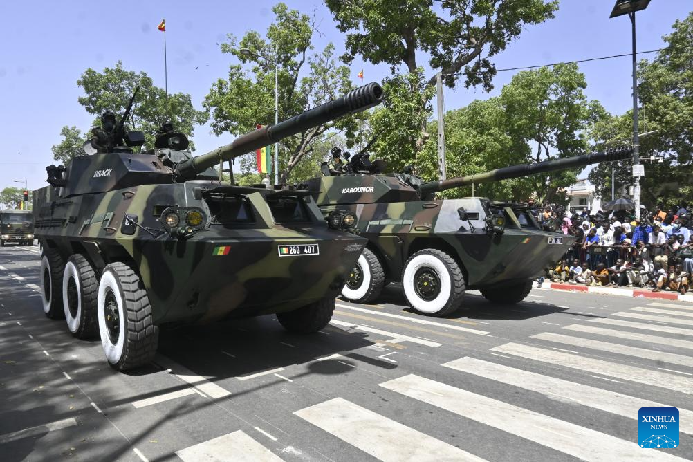 DAKAR, April 4 (Xinhua) -- Senegal on Saturday marked the 66th anniversary of its independence with celebrations held across the country, highlighted by a grand civil-military parade presided over by President Bassirou Diomaye Faye in the central city of Thies, about 70 km east of the country's capital, Dakar.