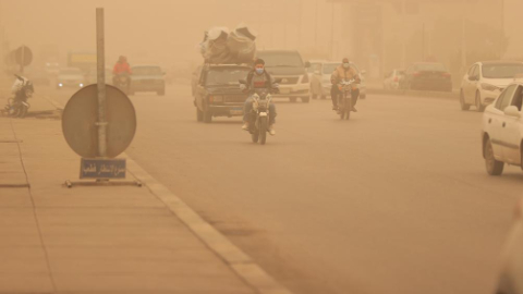 Vehicles seen on road amid dust storm in Cairo, Egypt