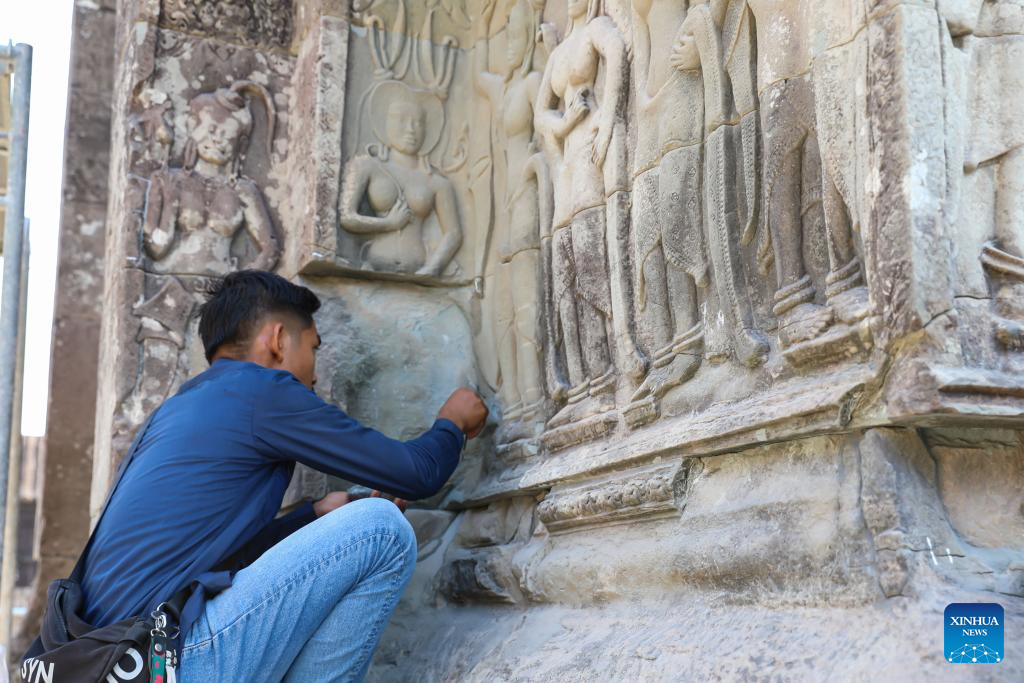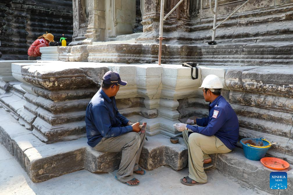 PHNOM PENH, April 6 (Xinhua) -- Archaeologists had successfully completed the restoration of a northern library located on the second level of the iconic Angkor Wat in Cambodia's Angkor Archaeological Park, said an APSARA National Authority (ANA) news release on Monday.