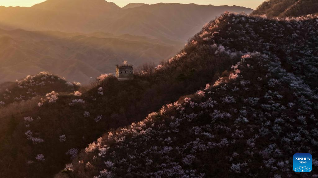 A drone photo taken on March 30, 2026 shows the spring scenery of the Great Wall in Qianxi County, north China's Hebei Province. (Photo by Liu Mancang/Xinhua)
