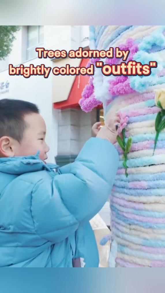 Trees adorned by brightly colored "outfits" in China's Nanchang