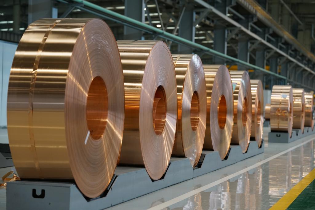 金川镍都实业有限公司高精铜带事业部内,泛着金属光泽的超薄纯铜带材缓缓下线。(受访者供图)