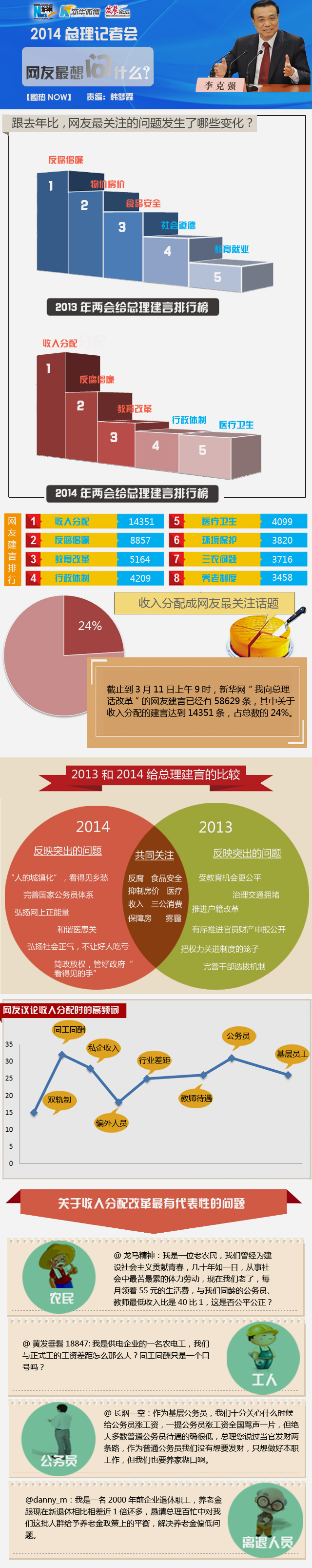 3月13日上午,國務院總理李克強將與中外記者見面,回答大家的問題。這是李克強總理第二次總理記者會,今年新華網(wǎng)推出了大型互動專題"我和總理話改革",收到了數(shù)萬條網(wǎng)友建言,在這些建言中,哪些問題是網(wǎng)友最關心的,如果是網(wǎng)友在記者會上提問,他們最想問什么?