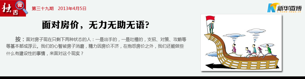 【當(dāng)“房”已成往事】 房事不要再提,政策已多風(fēng)雨,縱然現(xiàn)在買不起國五條后更買不起。真的要離了再娶,讓明天好好繼續(xù),你就不要再苦苦追問家庭信息。房?jī)r(jià)他是個(gè)難題,讓人目眩神迷,限價(jià)房或許可以廉租房卻太不容易。權(quán)力他不曾離去,房?jī)r(jià)就漲在那里,我對(duì)家仍有愛意,限購讓我無能為力。