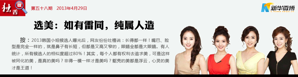 【選美?公然作弊?】 整容技術(shù)越來越先進(jìn),偽造美麗卻到了該反思的地步。韓國小姐的比賽分為真、善、美三個競賽部分?,F(xiàn)在看來,比賽已經(jīng)無法體現(xiàn)“真”這個部分了。