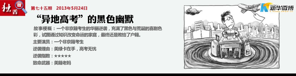 【這是一片神奇的土地】 你是外地人,沒資格在北京高考,但突然你成了美國人,你就可以參加了。這是中國這個困難模式生存游戲里的后門BUG。