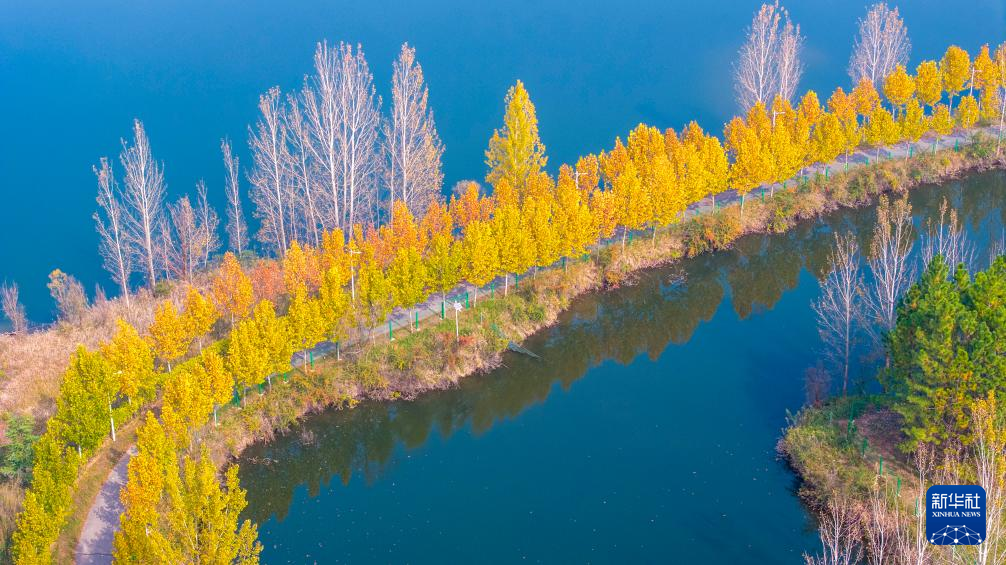 10月28日在黄河小浪底水利枢纽风景区附近拍摄的秋景(无人机照片)。