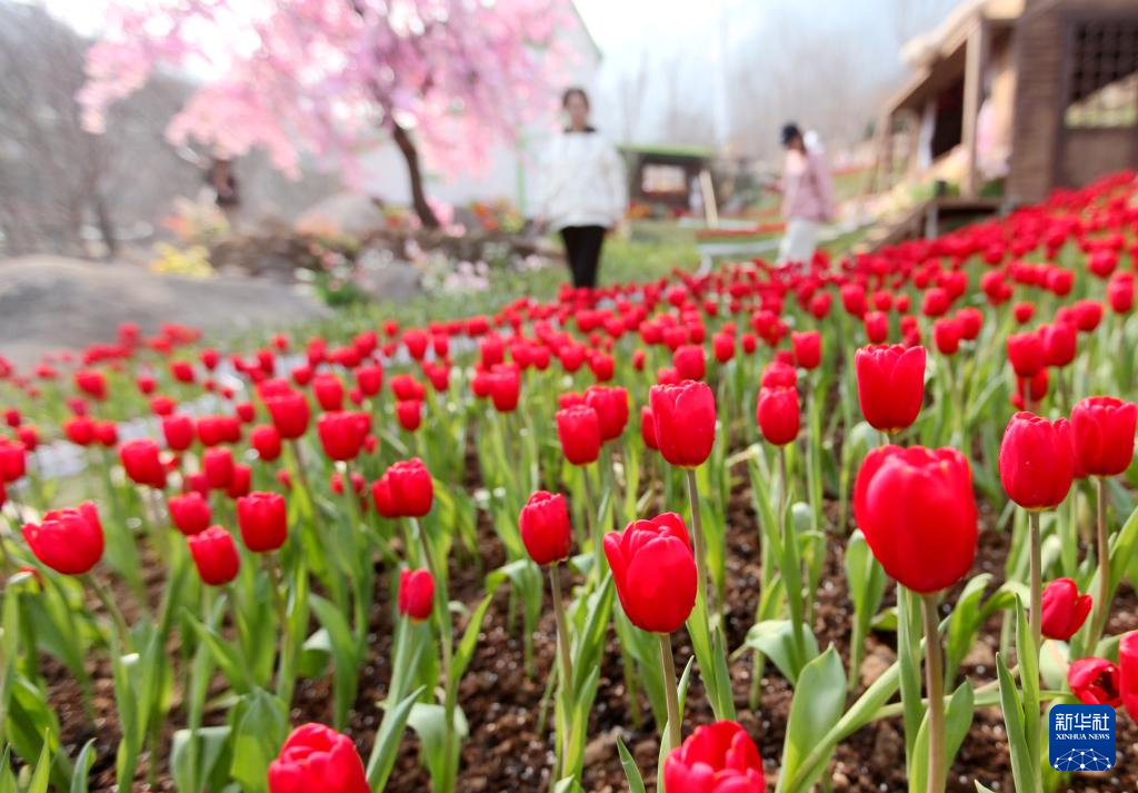 3月12日,游人在山东省临沂市沂蒙山天蒙旅游区赏花游玩。