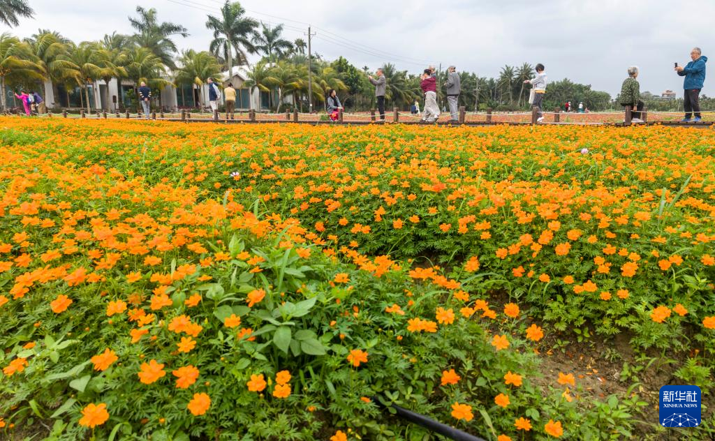3月12日,游人在海南省琼海市博鳌镇大路坡村花海踏青赏花。