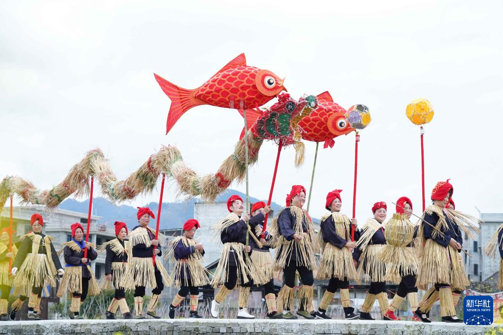 3月28日,在贵州省榕江县三宝侗寨,侗族群众舞稻草龙欢庆“萨玛节”。
