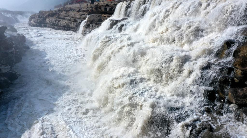 無人機(jī)航拍壺口瀑布 驚濤拍岸場面壯觀