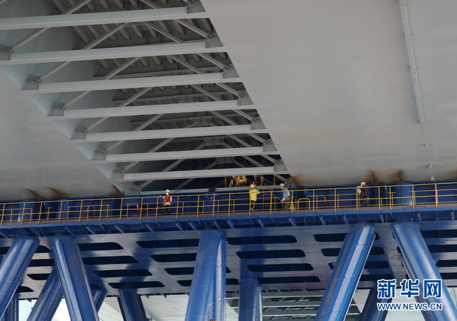 “冒出來”的并不是一座完整的大橋,而是一段跨徑長達(dá)200米的雙拱鋼橋,在海面中央兀然矗立。“這是我們大橋工程最核心的主橋部分,技術(shù)難度最大,對整個(gè)項(xiàng)目有里程碑的意義。”承建單位中國路橋工程有限公司董事、項(xiàng)目總指揮闞軍說。