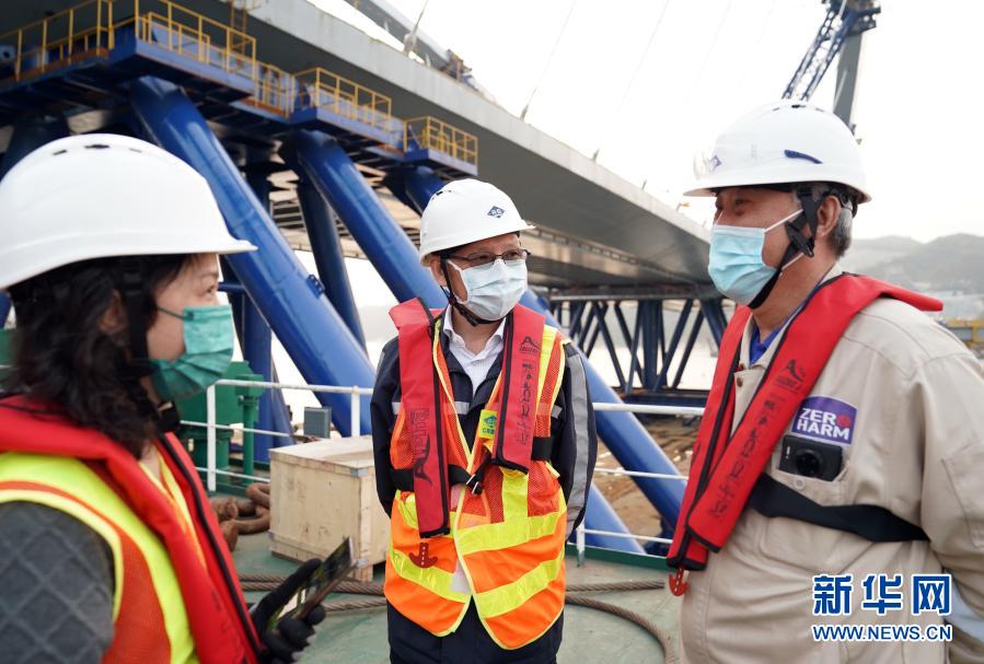 特區(qū)行政長官林鄭月娥于2月25日和特區(qū)政府運(yùn)輸及房屋局局長陳帆等一同乘船視察了該工程,并與之合影。在當(dāng)天的個(gè)人社交媒體上,她對這一“超巨型的預(yù)制組件”鋼橋表示贊賞,對工程的諸多創(chuàng)新表達(dá)期待。