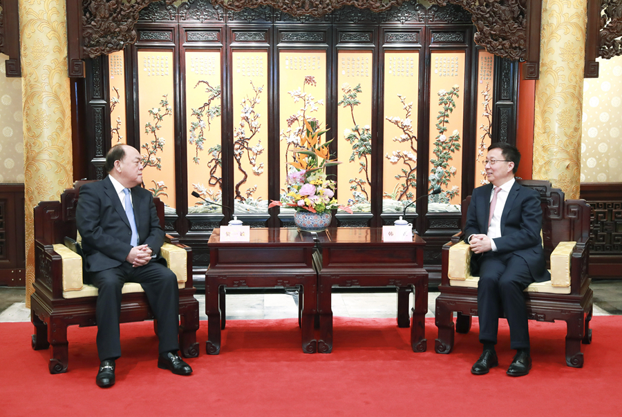 林鄭月娥、賀一誠(chéng)表示,感謝中央政府對(duì)香港、澳門(mén)發(fā)展的大力支持,將按照中央要求,積極作為,履職盡責(zé),保持香港、澳門(mén)長(zhǎng)期繁榮穩(wěn)定。