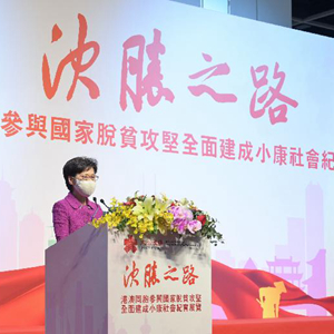 新華社香港3月23日電(記者韋驊)香港特區(qū)行政長(zhǎng)官林鄭月娥23日出席“決勝之路——港澳同胞參與國(guó)家脫貧攻堅(jiān)全面建成小康社會(huì)紀(jì)實(shí)”展覽開(kāi)幕禮,慶祝國(guó)家在脫貧攻堅(jiān)戰(zhàn)中取得的重大勝利,同時(shí)肯定香港特區(qū)各界在這一過(guò)程中所作出的貢獻(xiàn)和努力。
