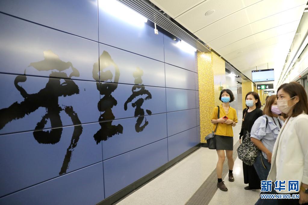 用傳統(tǒng)書法演繹的地鐵站站名“宋皇臺”(7月6日攝)。新華社記者 吳曉初 攝