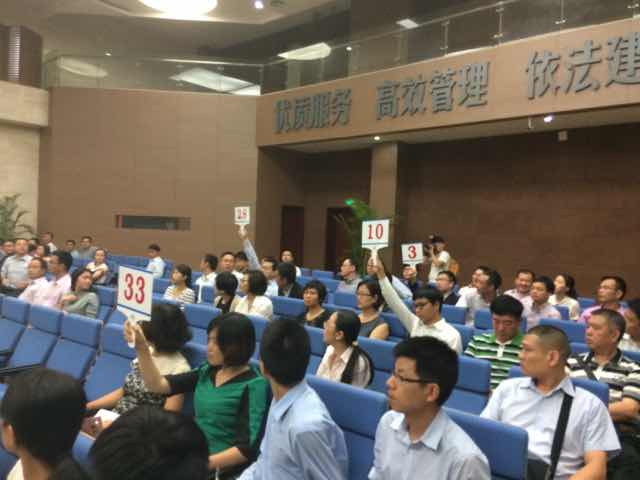 | 到15點(diǎn)50分左右,競爭開始白熱化。此前僅1次應(yīng)價(jià)的28號(hào),開始口頭報(bào)價(jià),直接將價(jià)格從33億元2千萬,推至34億元。主持人說,歡迎大家口頭報(bào)價(jià)。 |