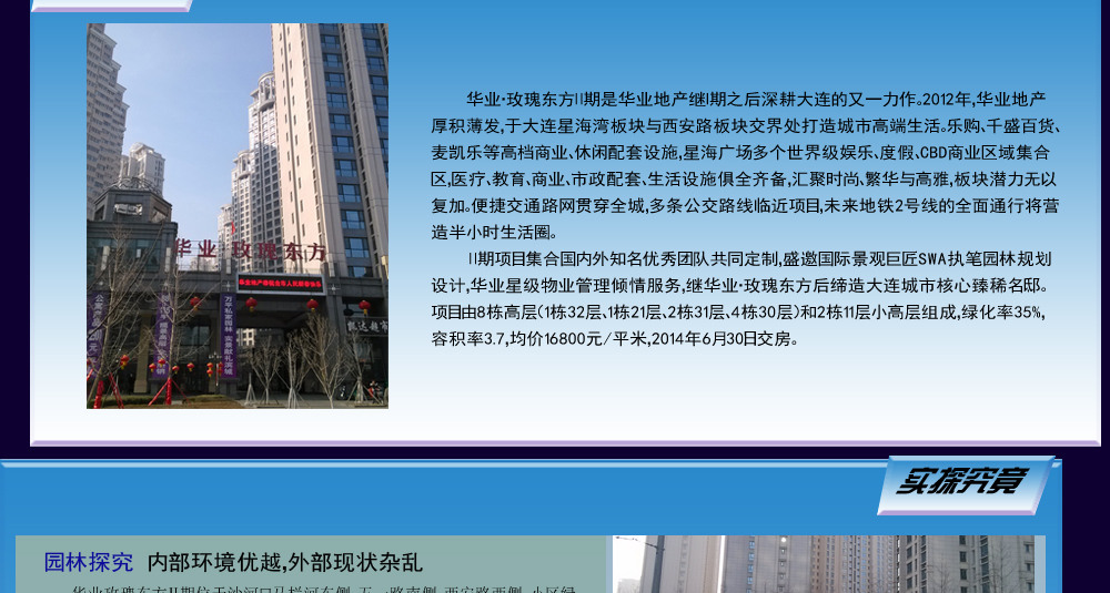 ????說(shuō)起大連的幾大商圈,西安路與和平廣場(chǎng)不得不提,而位于這兩個(gè)商圈中間位置的華業(yè)玫瑰東方Ⅱ期,成為眾多購(gòu)房者關(guān)注的焦點(diǎn),本期的神秘訪客我們就實(shí)地探訪華業(yè)玫瑰東方Ⅱ期,看一看它的優(yōu)勢(shì)與不足。
