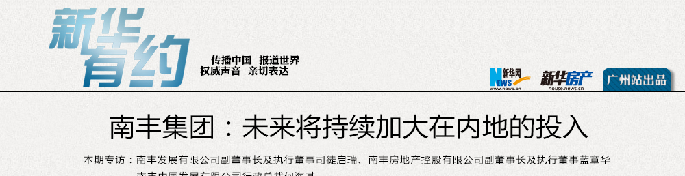 已在廣州投資南豐匯環(huán)球展貿(mào)中心和南豐國際會展中心的南豐集團,未來仍將廣州定為房地產(chǎn)發(fā)展進攻之地。藍章華表示,從信息優(yōu)勢、品牌優(yōu)勢、創(chuàng)新優(yōu)勢上來說,南豐有大舉進攻廣州市場的信心。【詳情】