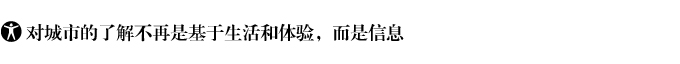 ![]() 城市越冒險(xiǎn),生活其中的人們對(duì)城市就會(huì)越陌生??梢姷氖聦?shí)是,人們對(duì)城市的了解不再是基于生活和體驗(yàn),而是信息。此前延續(xù)多年的城市生活規(guī)律和節(jié)奏被互聯(lián)網(wǎng)打破了,互聯(lián)網(wǎng)把城市的每一部分都終端化,城市的每一個(gè)具有生命特征的組織不再受生理和情理的連接,而是信息的連接。一方面,信息成為連接人與人、人與城市、城市與城市的單一工具,信息把城市圈成了地域以外的另一種空間,只是,信息的流動(dòng)性并沒有協(xié)助人了解城市,反倒是增加了越來(lái)越多的陌生。 另一方面,陌生又完成了城市開放意象的表達(dá),這也是一座城市為什么能吸引外來(lái)者旅游、造訪、定居的重要原因。信息的獨(dú)立和集合讓人、讓城市的局部在封閉系統(tǒng)之外,又像互聯(lián)網(wǎng)時(shí)代的物流一樣多樣化、復(fù)合化。 |