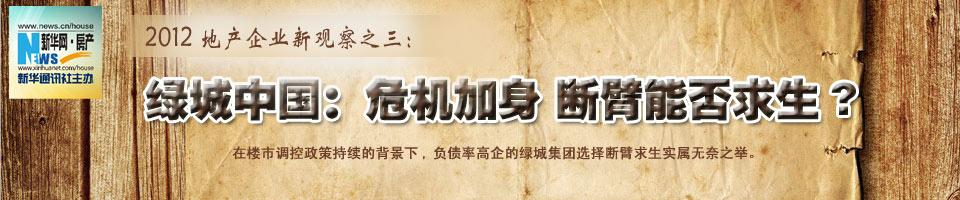 【綠城急否認"破產門"】本輪調控中,綠城成為最被關注的高危企業(yè),從"信托調查門"到"退市門",再到"破產門",即便一些信息至今仍未被證實,但有一點可以肯定,此輪調整中,綠城資金緊張程度確為大型企業(yè)之首。網上突現(xiàn)綠城正申請破產傳聞,宋衛(wèi)平不得不在集團網站撰文澄清,告知"綠城離破產還有很遠的距離"。 …[詳細] |