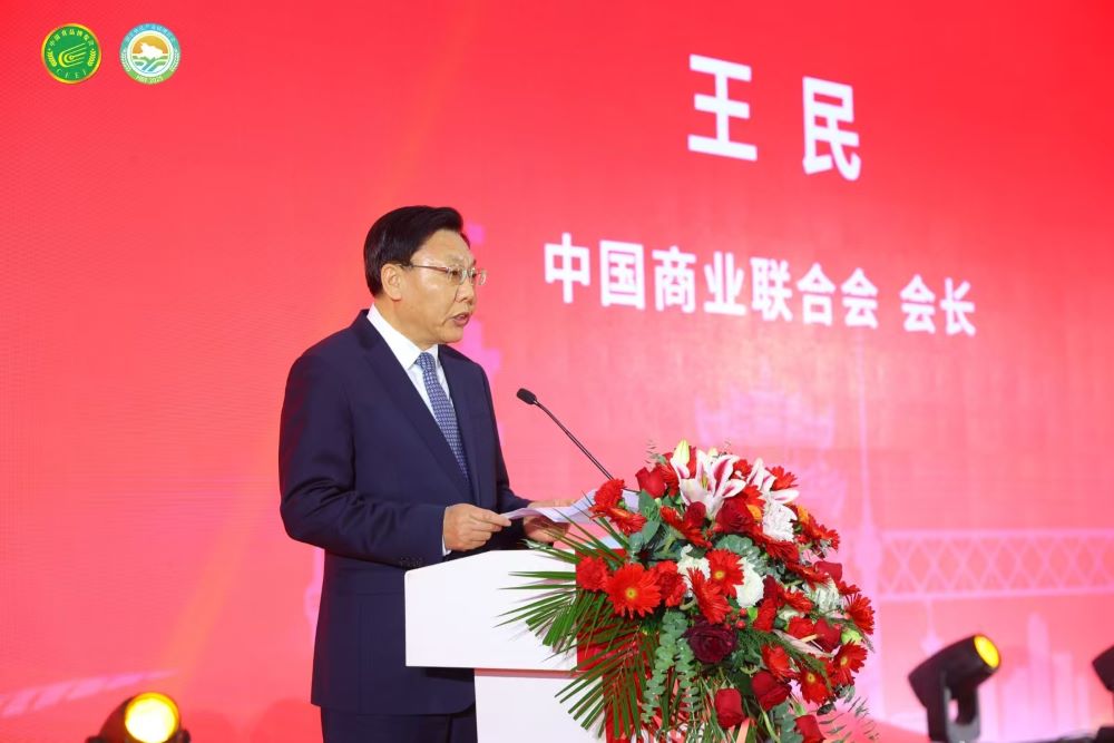图为中国商业联合会会长王民致辞。