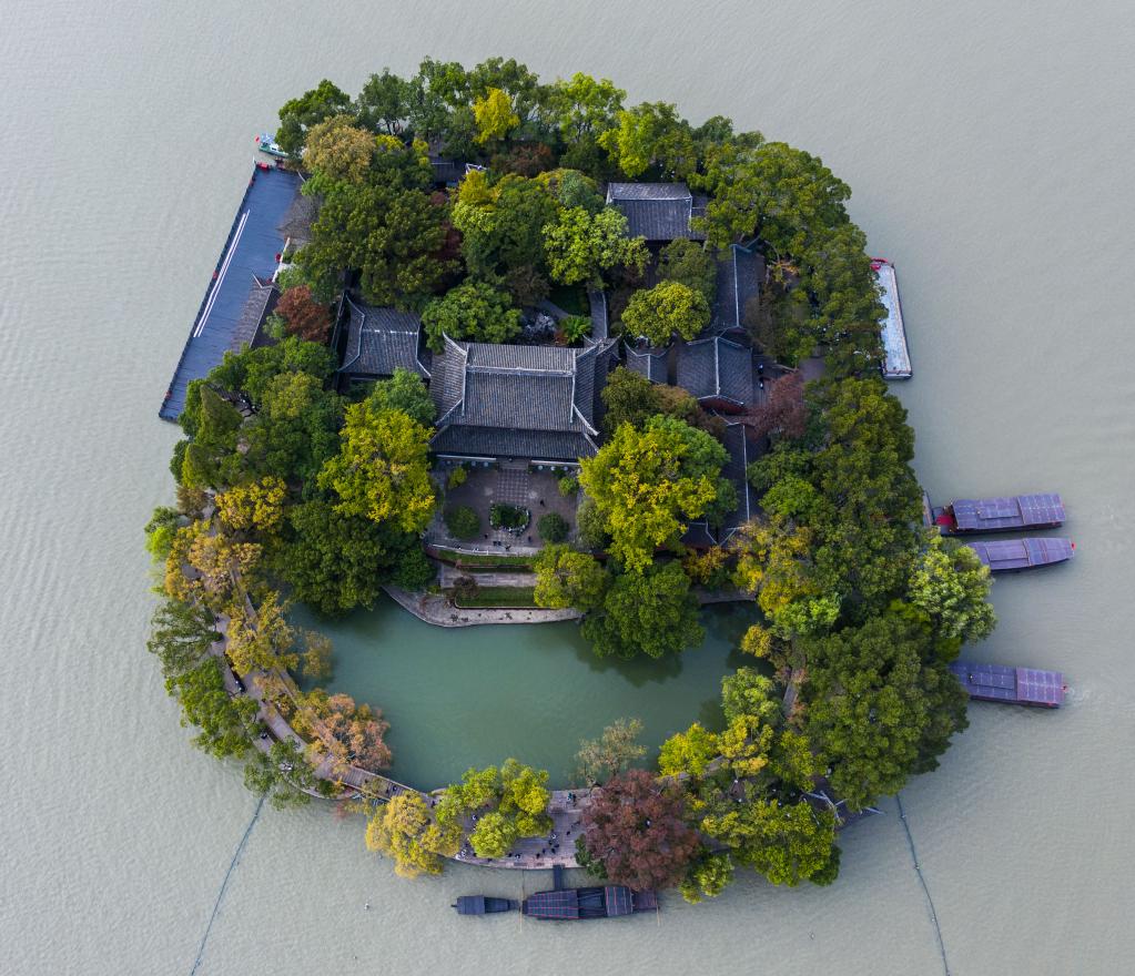 空中俯瞰嘉興南湖湖心島(無人機(jī)照片)新華社記者 徐昱攝