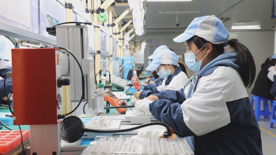 江西佳禾電聲科技生產(chǎn)車間一角。(楊江平攝 新華社通聯(lián)照片)